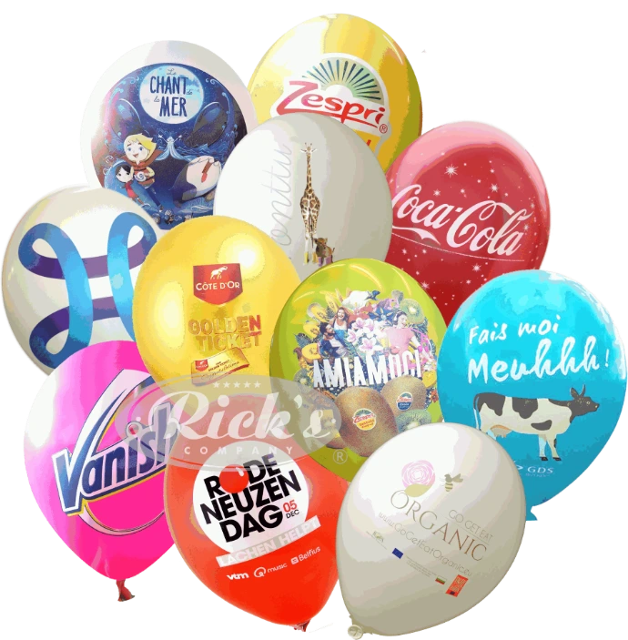 Nous imprimons vos ballons par sérigraphie de haute qualité. Nous utilisons 1 toile de sérigraphie par couleur demandée. De cette façon nous pouvons imprimer de 1 à 8 couleurs à la suite. Si davantage de couleurs sont nécessaires, ou si des effets d’ombre sont souhaités, nous utilisons alors le procédé d’impression CMYK, couplé, si besoin, à l’impression d’un fond blanc sur ballon coloré.